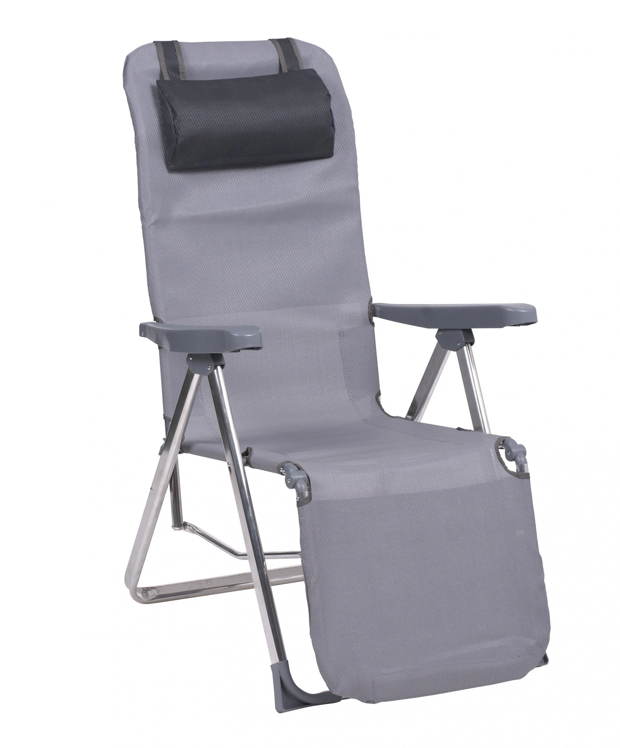 Relaxer aluminium oval tube closed leg. Textilene 2X1. Plain armrests. Adjustable headrest. Grey. Multiposition.
