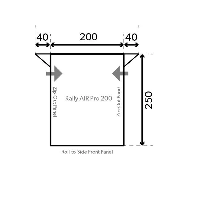 It is possible to attach our new integrated windbreak (optional) and the Rally 200 comes ready to accept a Storm Tie Down kit, Monsoon pole, rear upright pole set and a two berth inner tent – all available as optional extras.