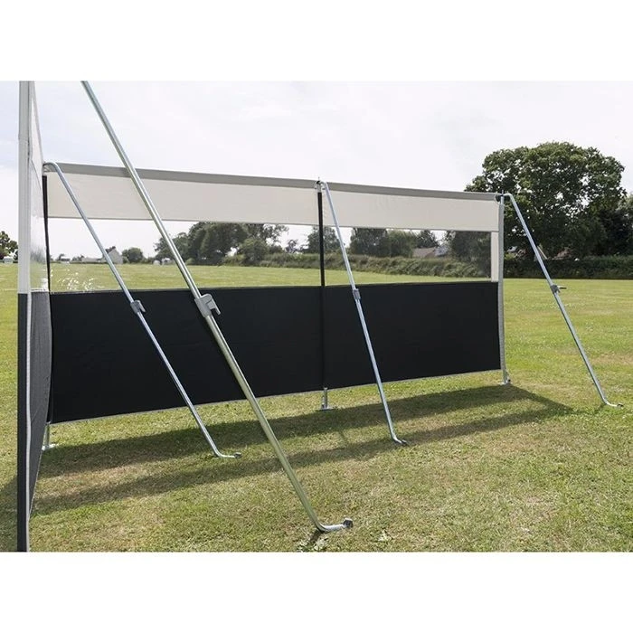 Providing great protection on blowy days with strength coming from adjustable support pole struts on the upright poles.