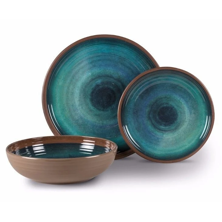 This 12-piece set, made of 100% melamine, is extremely durable, lightweight and dishwasher safe.