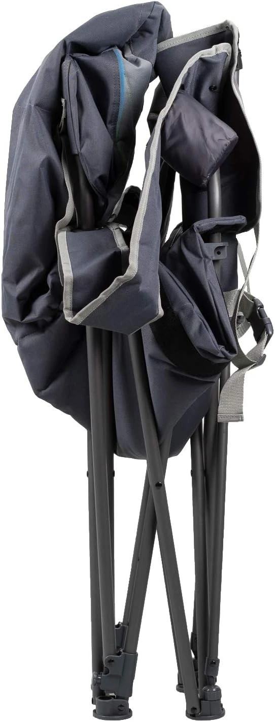 Even with the integrated leg rest, the entire chair folds down in one piece – the process is just as easy and quick as any other folding chair. However, despite its integration, the leg rest can (if you so wish) be removed entirely – making the Ole XXL Camping Chair an adaptable item of outdoor furniture. It is durable too, boasting UV and fade-resistant material. With or without the leg rest, the Ole XXL’s Camping Chair’s stable frame, padded seat, and wide armrests produce the same luxurious comfort of your armchair at home.
