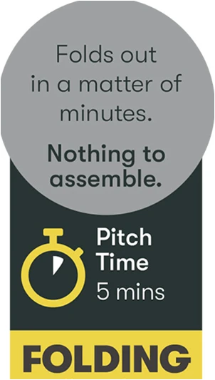 | 420D Extra durable fabric. | Single person pitch. | Nothing to assemble. | Minutes to erect. | Comes with its own heavy duty carry bag. | Upgraded frame. | UV 50+ protection. | Zero tension frame. | Extra roof bars for added stability | Screw fix frame (not riveted). | Multi functional. | Quick drying. | Silver lining on roof for added UV protection