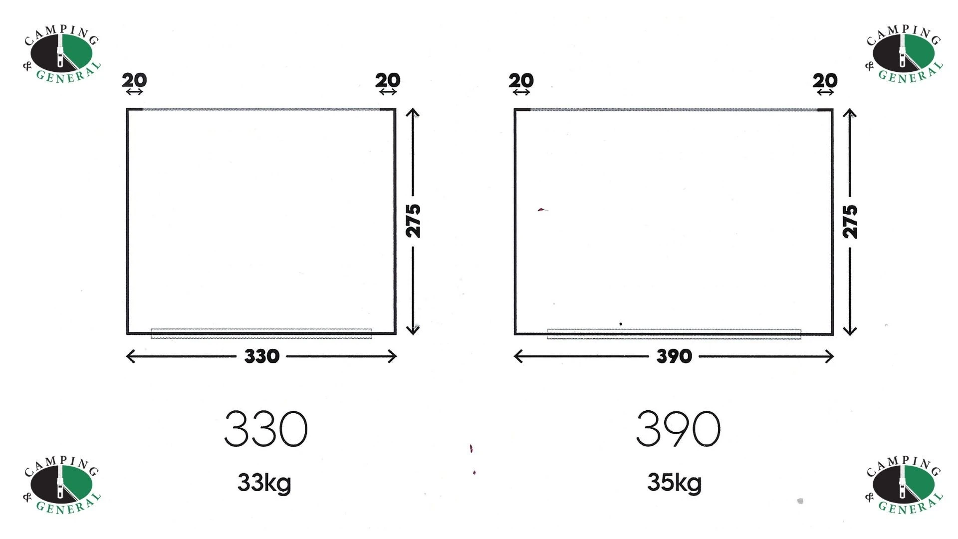 Complete with Pump, draught skirt, curtains, compression carry bag & peg pack