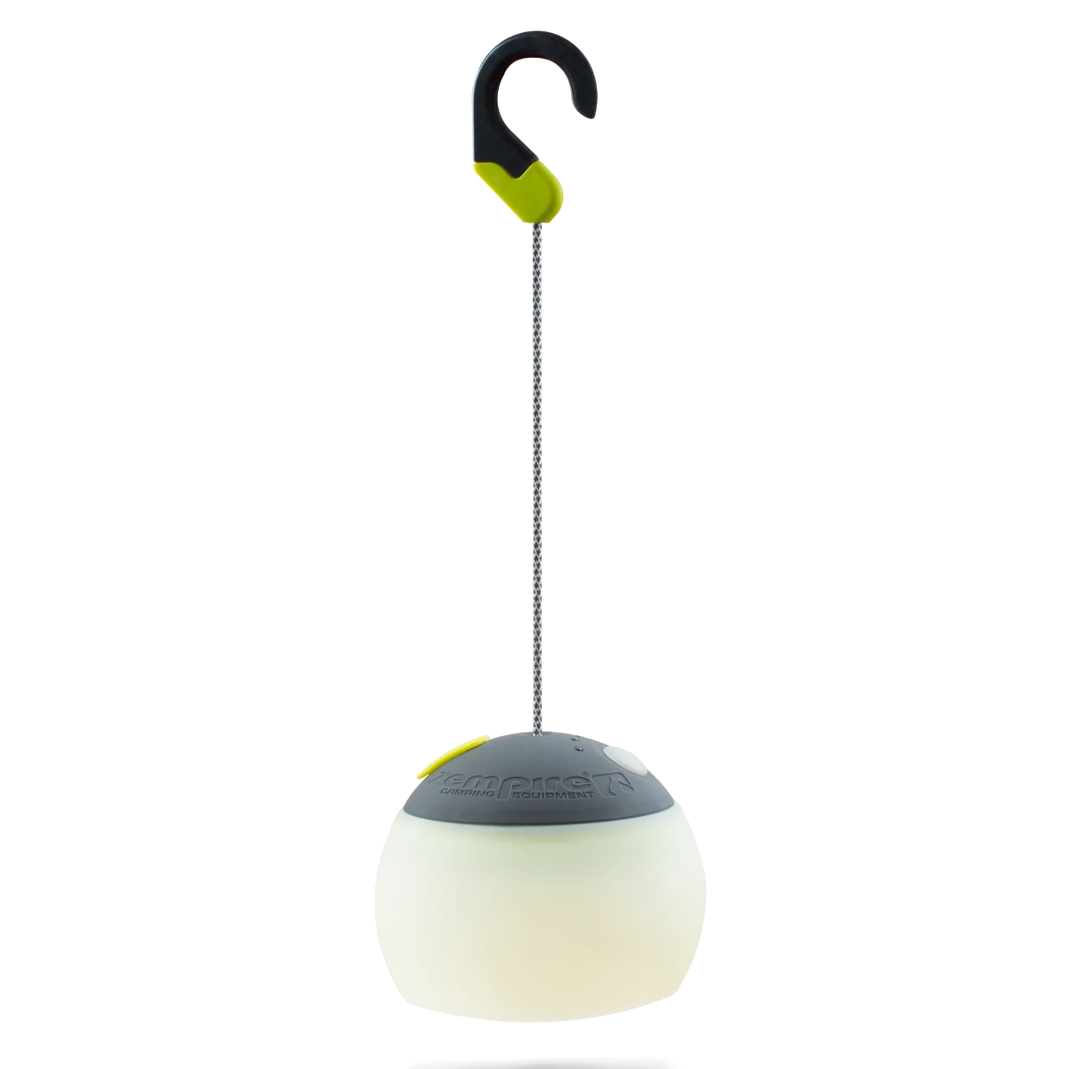 The Megadome V2 is a modern dome-shaped camping lantern with a high output LED bulb. A soft-touch glow-in-the-dark diffuser sits flat on a tabletop for warm diffused central lighting. Alternatively, the integrated hanging cord and hook allows the light to be hung from just about anywhere. A USB rechargeable lithium battery makes it easy to top up power and boasts up to 45 hours run time.