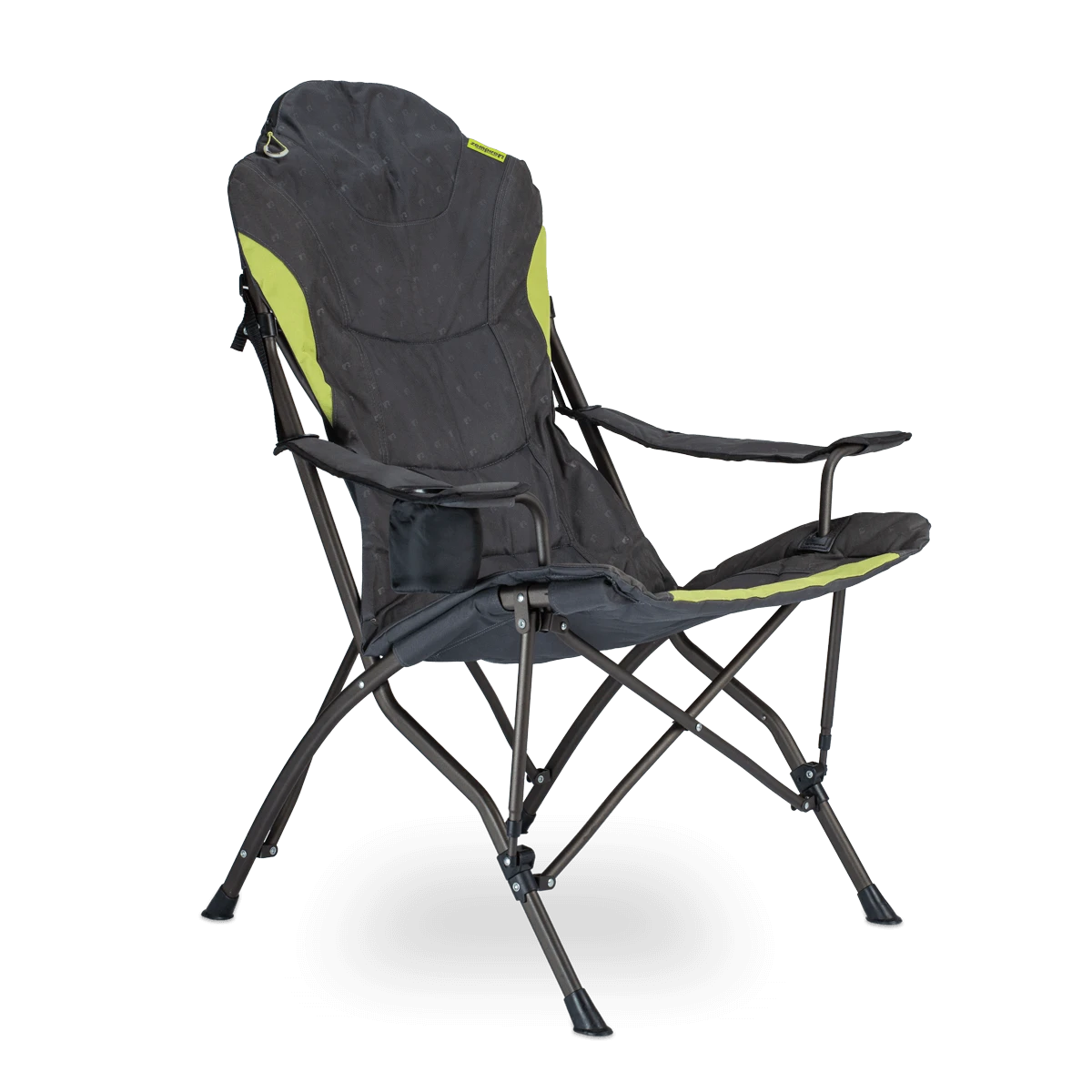The Stargazer is a luxurious camp chair. An extra-high back is supportive and fully-padded for comfort. The zippered opening at the top offers the perfect storage space for your carry-bag, creating an integrated pillow. Adjustable arm straps allow you to customize the arm height to suit any user. A built-in insulated cup holder guarantees that your drinks stay cold on hot summer days.